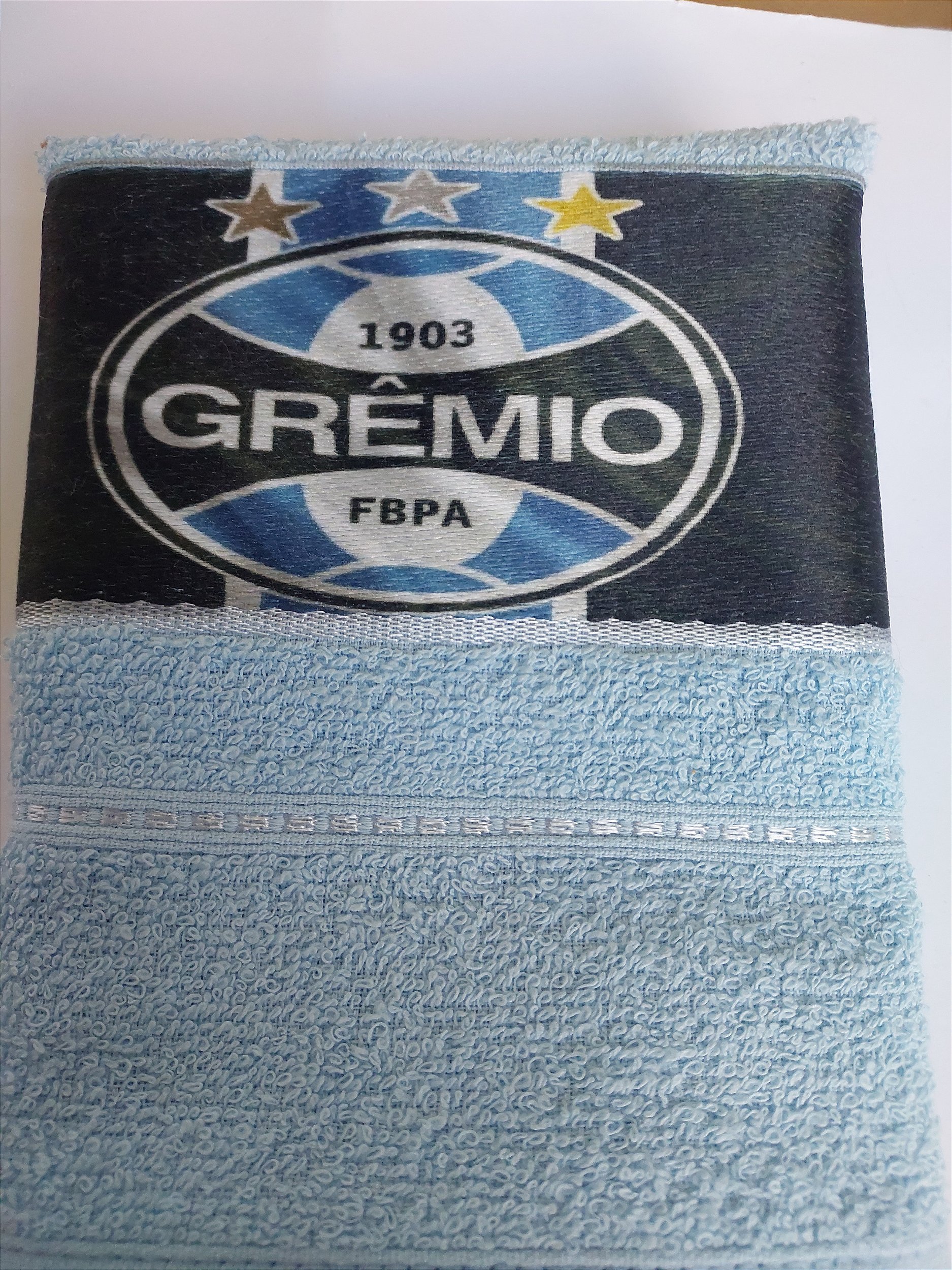 Toalha de mão. Personalizada com logo do Grêmio. Medindo 50x30. A toalha Atoalhado macio e absorvente.